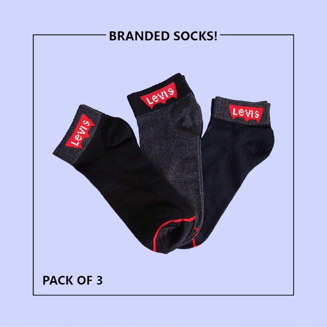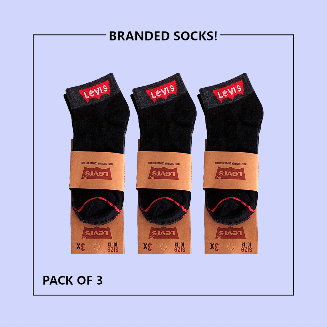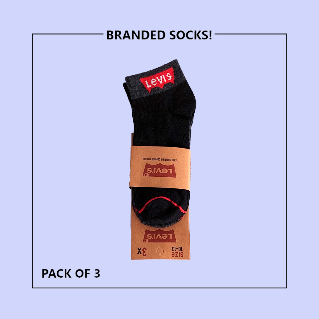 L-E-V-I-S Export-Leftover Branded Ankle Moza Socks (PACK OF 3)