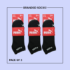 “Sleek Trio: Pack of 3 P-U-M-A Export-Leftover Branded Ankle Moza Socks | Buy Now!”